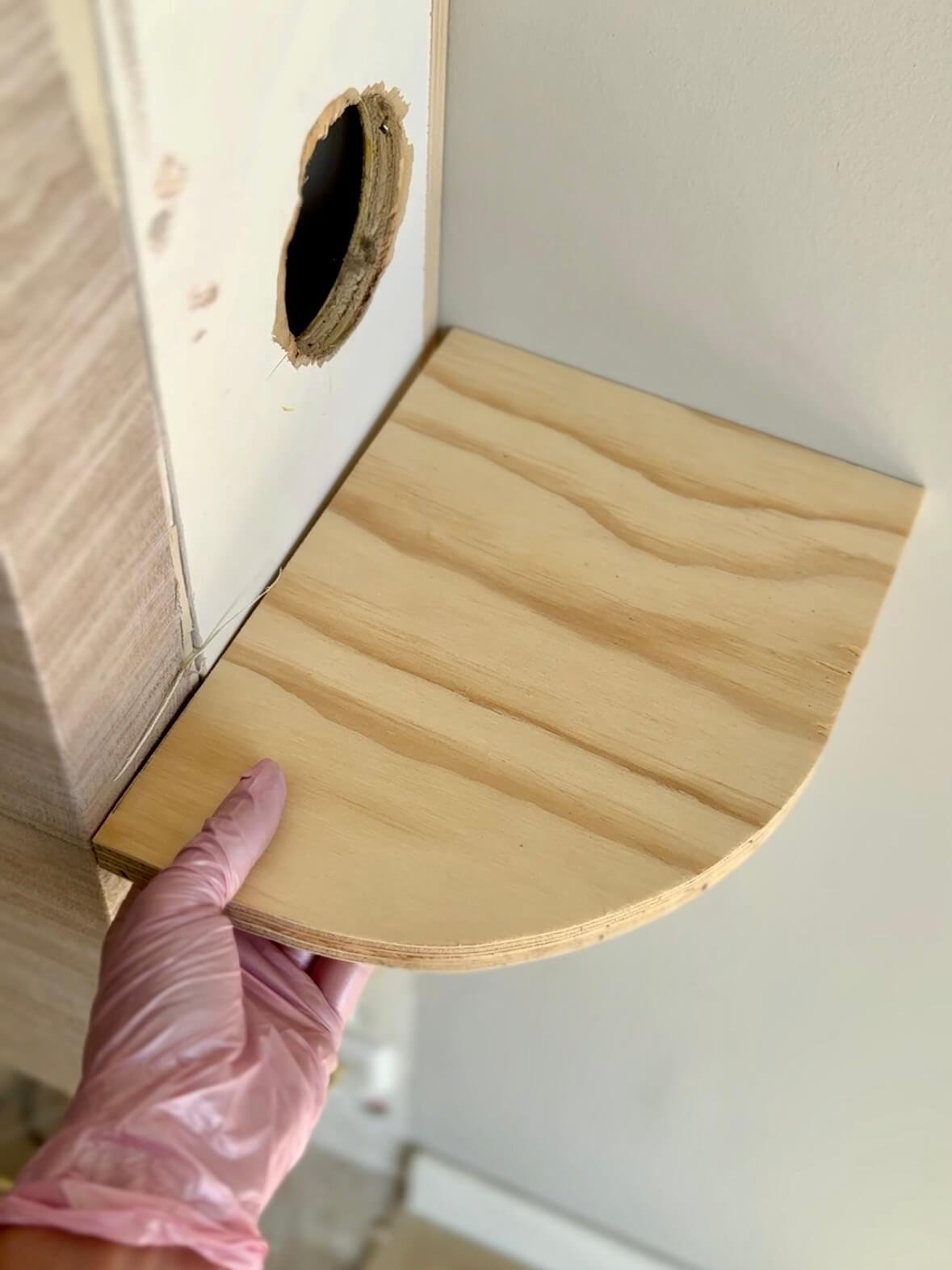Met een zelfgezaagd malletje in de vorm van de ronding strijk je de laag in de juiste vorm.